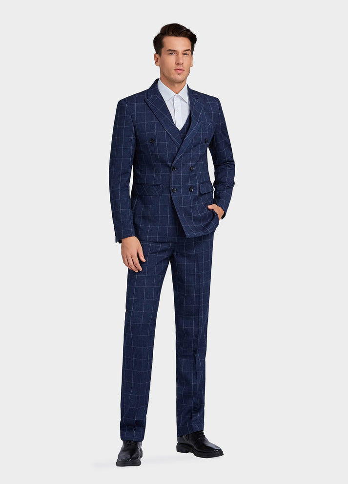 Dive into the epitome of winter wedding sophistication with Finepeek's blue checked suit, a masterpiece that seamlessly blends style and comfort. The soft checked plaid pattern adds a touch of timeless charm, making it an instant classic for any nuptials. The double-breasted fit not only exudes unparalleled elegance but also positions this suit as a must-have for those seeking a distinctive winter wedding ensemble. Perfect for events with a dress code calling for a suit, this sartorial gem truly shines, especially when paired with a roll-neck sweater for a semi-formal celebration. Embrace the season's allure and make a lasting impression with this impeccable blue checked suit that effortlessly captures the essence of winter wedding sophistication.