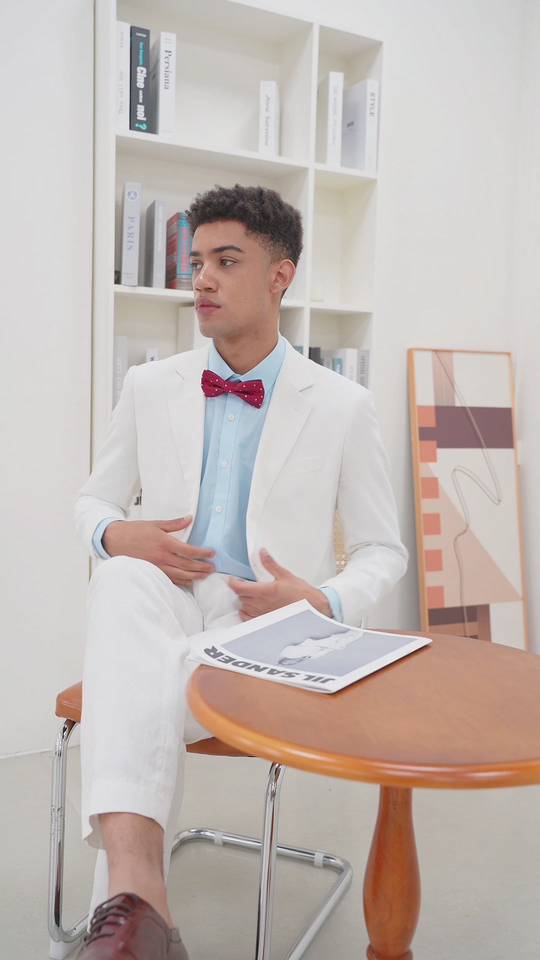 1PA1 Men's 100% Linen Lapel Two-Button Plain Blazer Suits